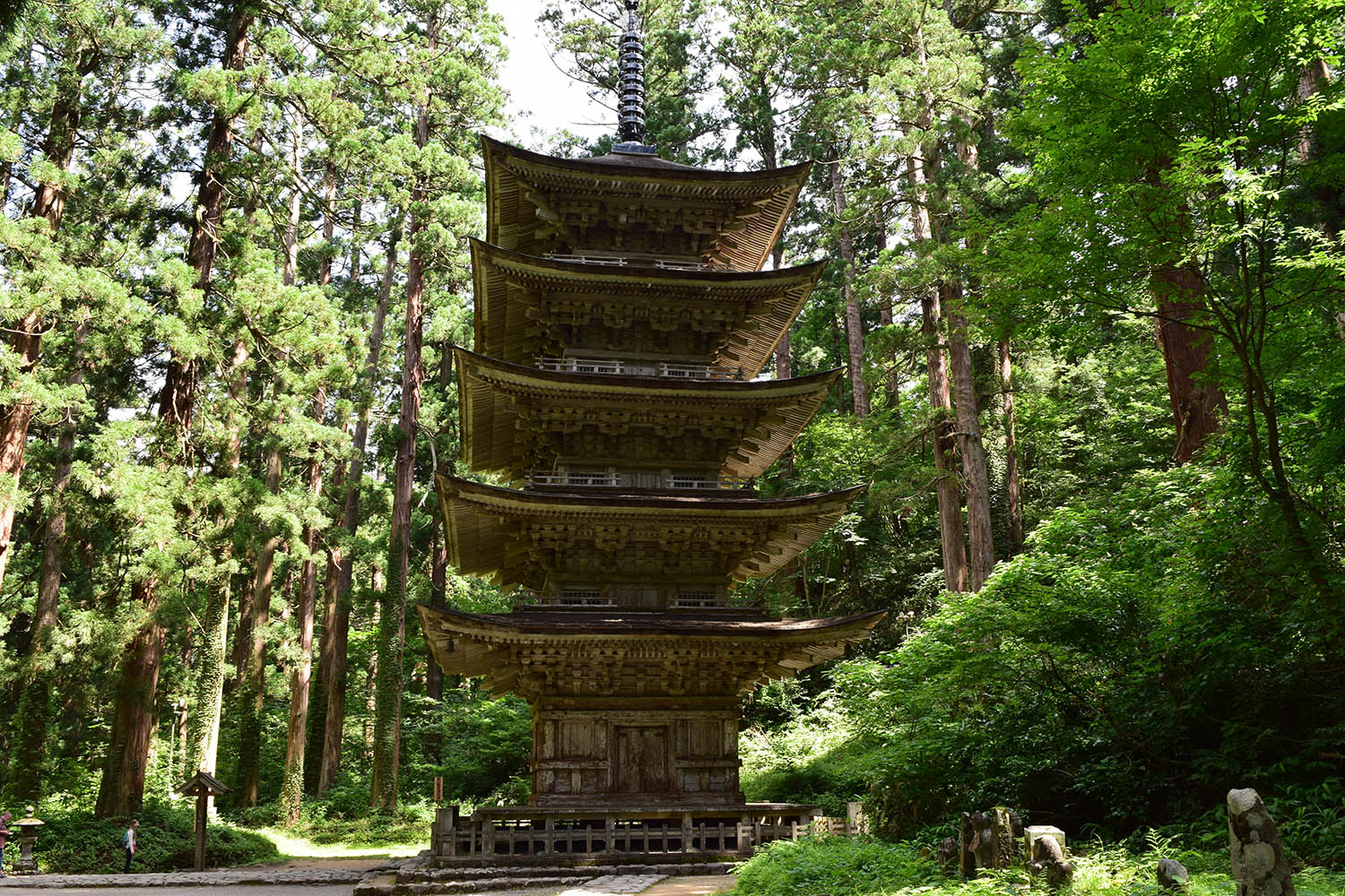 Ancien temple cher au poète Matsuo Basho et un des lieux spirituels les plus emblématiques de la région du Tohoku. Son chemin d'accès est formé de 1015 marches en pierre et l'on raconte que son ascension permettrait d'effacer les désirs terrestres. Qualifié de « Tenku Kosatsu » (vieux temple des cieux), son sommet offre un panorama exceptionnel. Le temple possède un charme particulier tout au long des saisons, mais c'est surtout en hiver, lorsque la neige recouvre les parois rocheuses et les édifices religieux, que sa beauté est à son paroxysme.